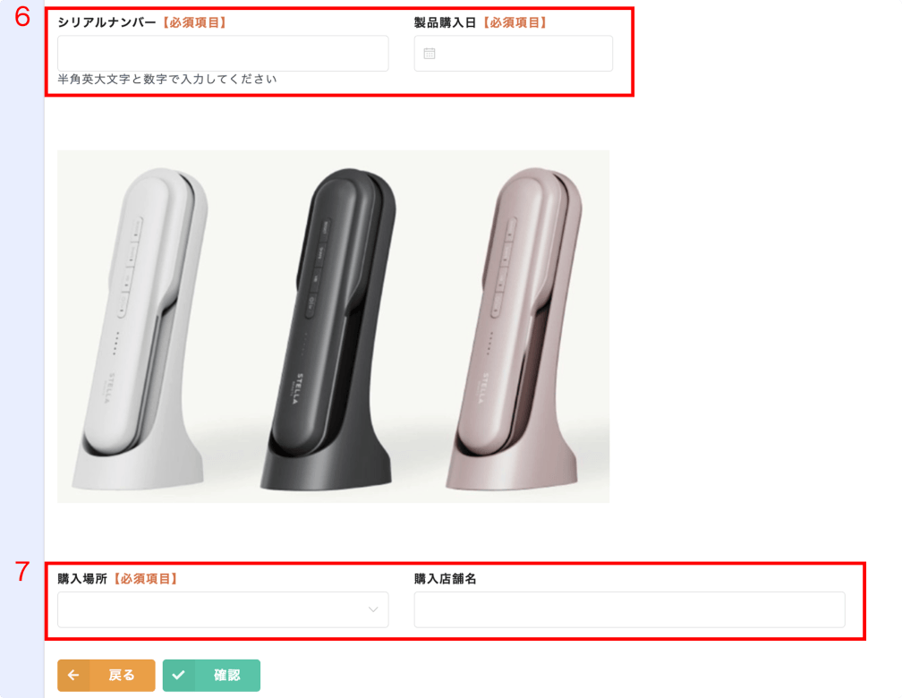 製品保証登録ページに遷移し、お客様情報の入力をすすめる。